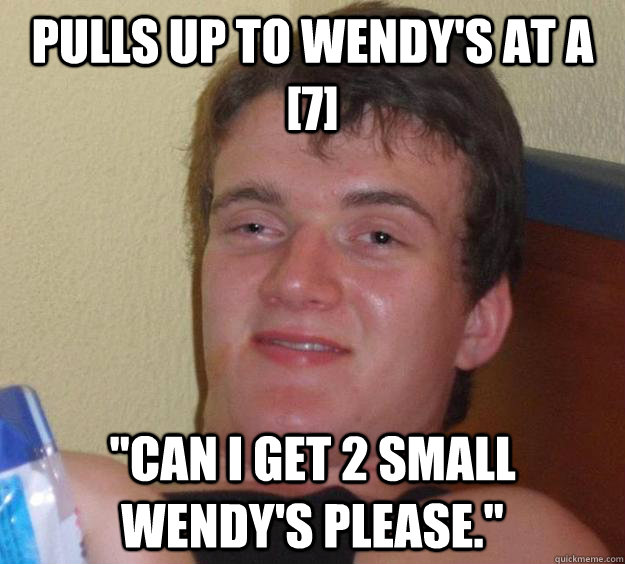 Pulls up to Wendy's at a [7] "Can I get 2 small Wendy's please."