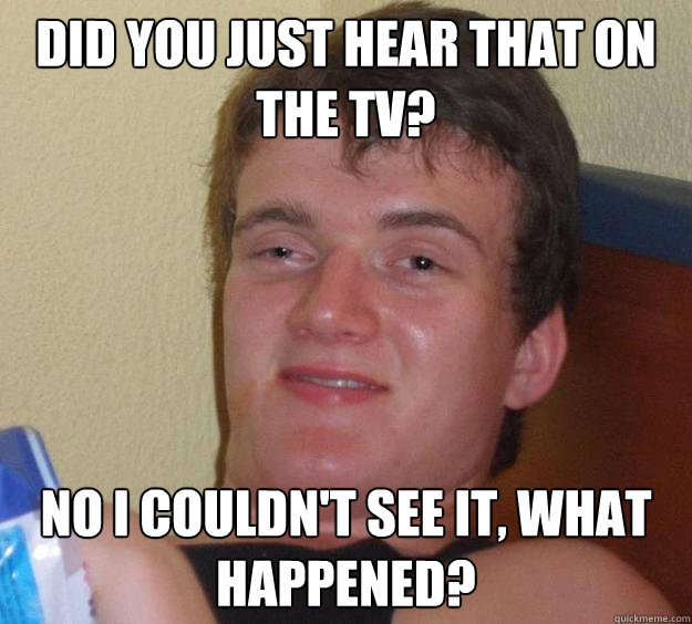 Did you just hear that on the tv? No I couldn't see it, what happened?