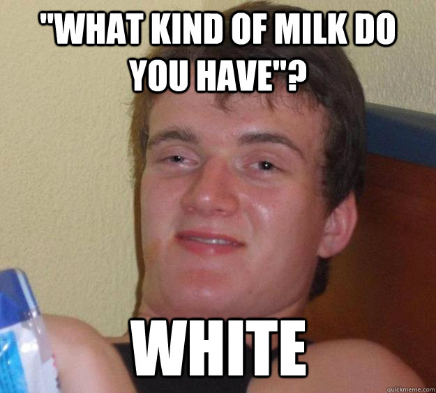 "What kind of milk do you have"? white