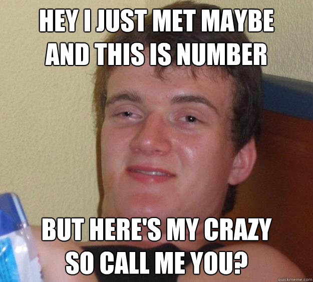 Hey i just met maybe and this is number But here's my crazy so call me you?