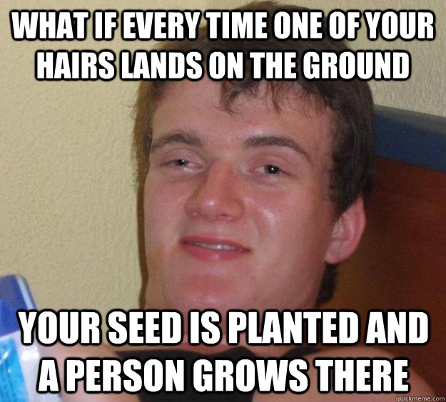 What if every time one of your hairs lands on the ground your seed is planted and a person grows there