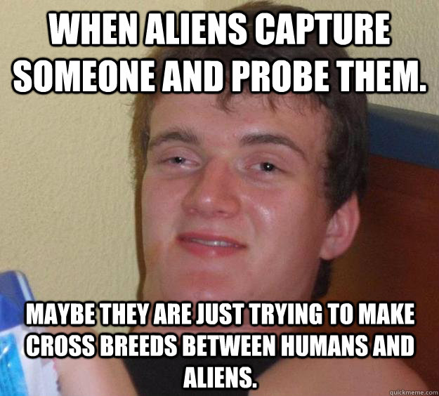 When aliens capture someone and probe them. Maybe they are just trying to make cross breeds between humans and aliens.