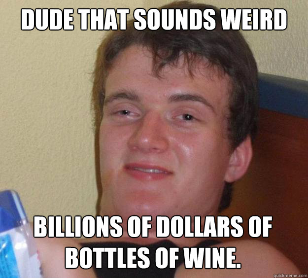 Dude that sounds weird Billions of dollars of bottles of wine.