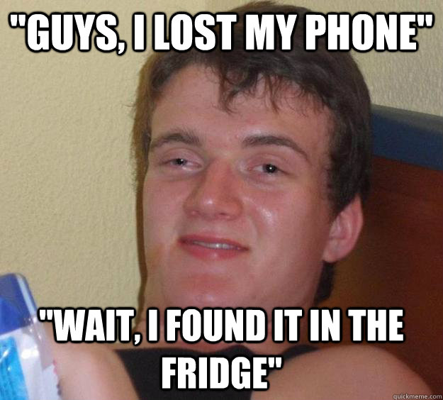 "guys, i lost my phone" "wait, i found it in the fridge"