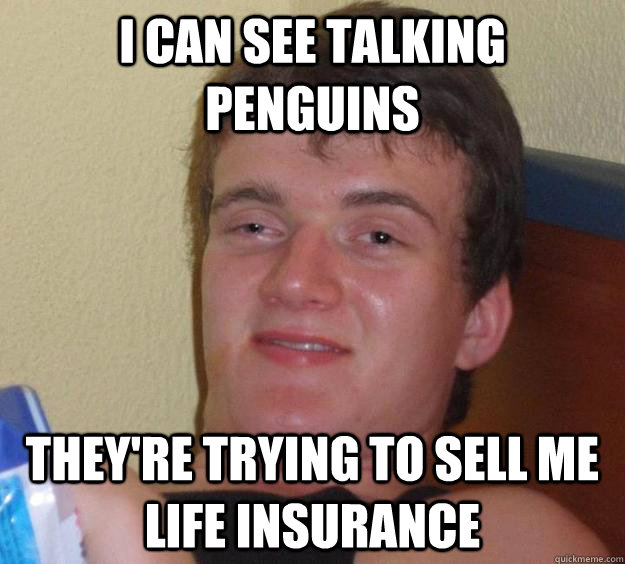 I CAN SEE TAlking penguins they're trying to sell me life insurance