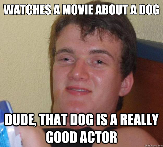 Watches a movie about a dog Dude, that dog is a really good actor