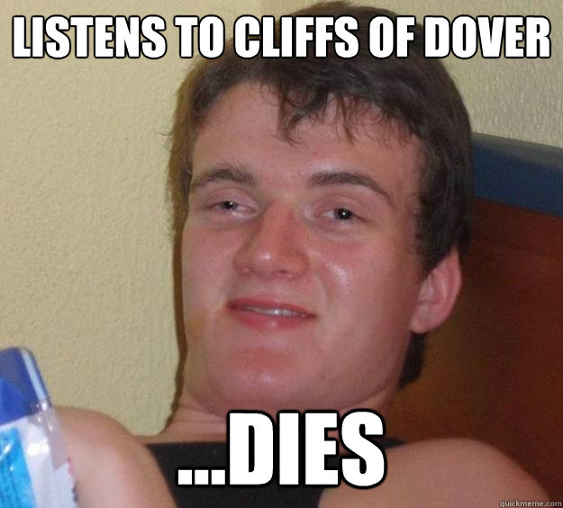Listens to cliffs of dover ...dies