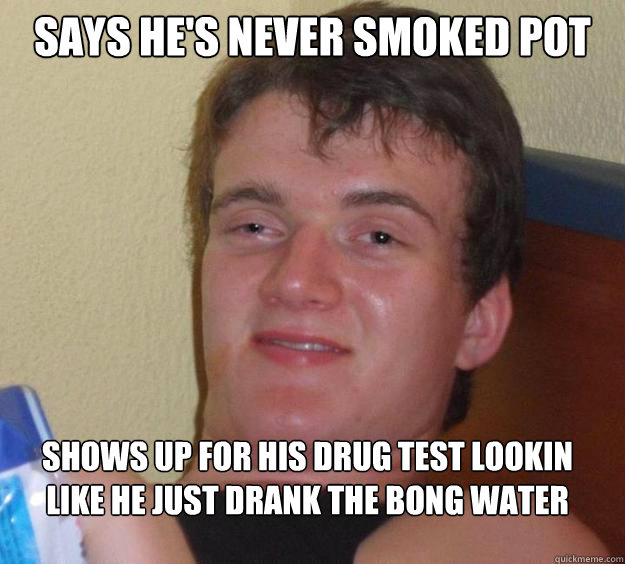 Says he's never smoked pot Shows up for his drug test lookin like he just drank the bong water