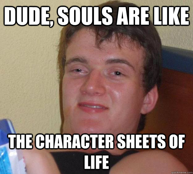 Dude, souls are like The character sheets of life