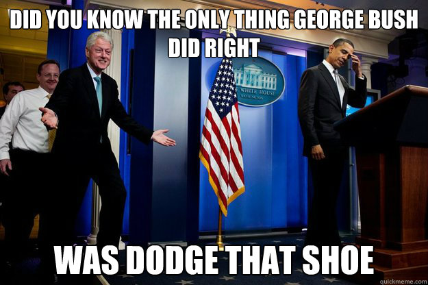 (Obama) I thought he said if I hired his wife he would stay out of the white house. (Clinton) Move over chump let me show you how its really done. (News) after President clinton's surprise appearance at the white house the economy sky rocketed 100%
