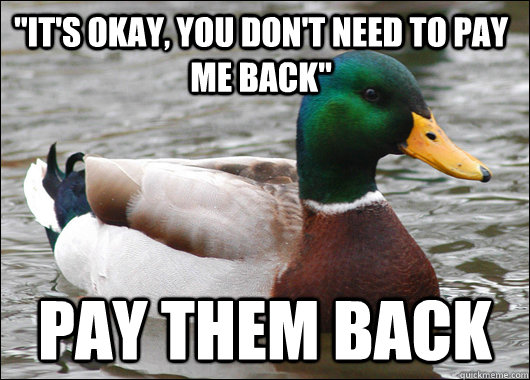 "It's okay, you don't need to pay me back" Pay them back