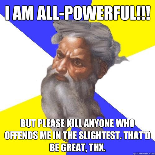 I AM ALL-POWERFUL!!! But please kill anyone who offends me in the slightest. That'd be great, thx.