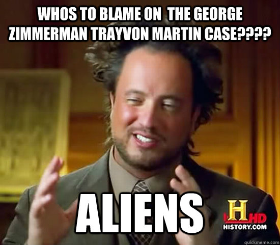 Whos to blame on the george zimmerman trayvon martin case???? Aliens