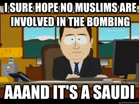 I sure hope no Muslims are involved in the bombing Aaand it's a saudi