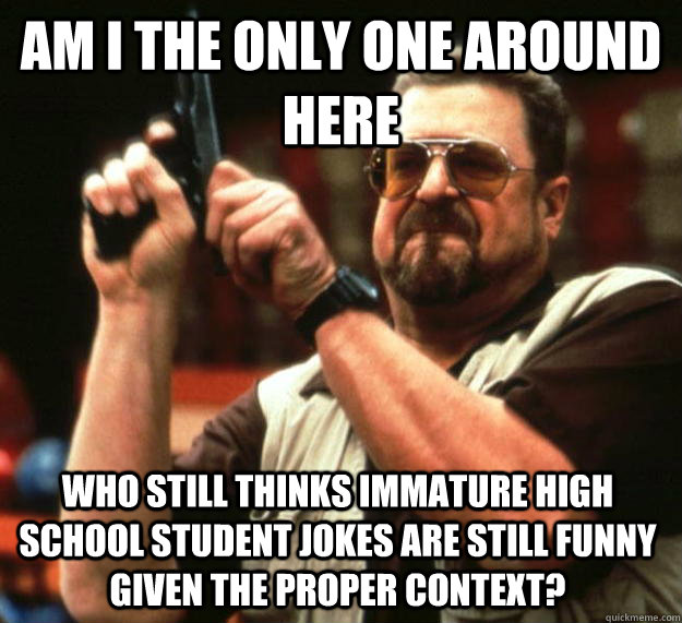 am I the only one around here who still thinks immature high school student jokes are still funny given the proper context?