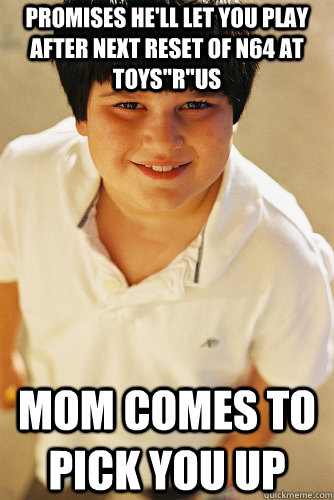 promises he'll let you play after next reset of n64 at toys"r"us Mom comes to pick you up
