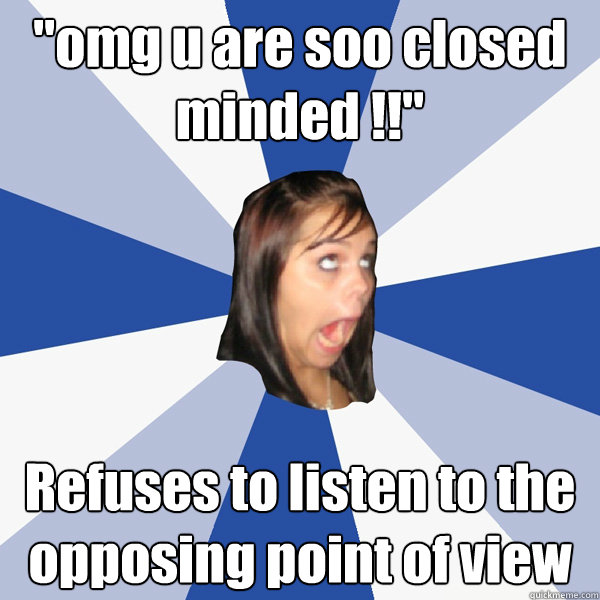 "omg u are soo closed minded !!" Refuses to listen to the opposing point of view