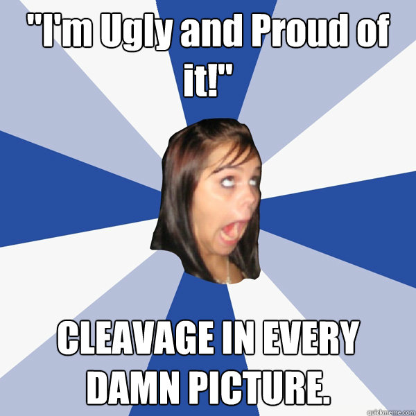 "I'm Ugly and Proud of it!" CLEAVAGE IN EVERY DAMN PICTURE.