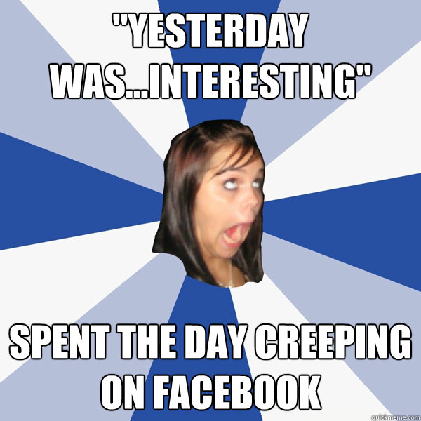 "yesterday was...interesting" spent the day creeping on facebook