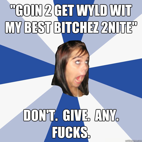 "goin 2 get wyld wit my best bitchez 2nite" don't. give. any. fucks.