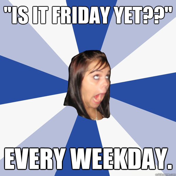 "Is it Friday yet??" Every weekday.