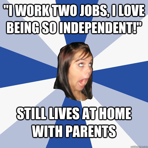 "I work two jobs, I love being so independent!" still lives at home with parents