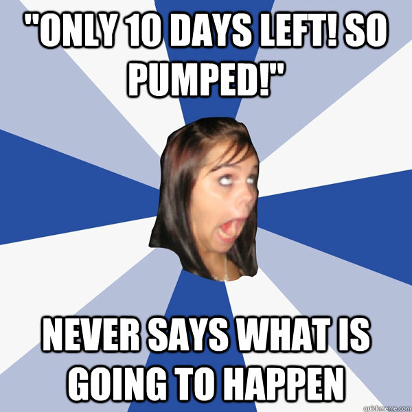 "only 10 days left! so pumped!" never says what is going to happen