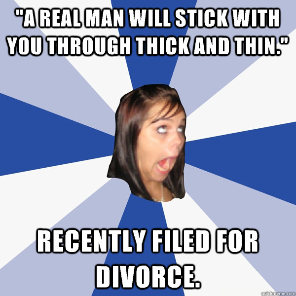 "A real man will stick with you through thick and thin." Recently filed for divorce.