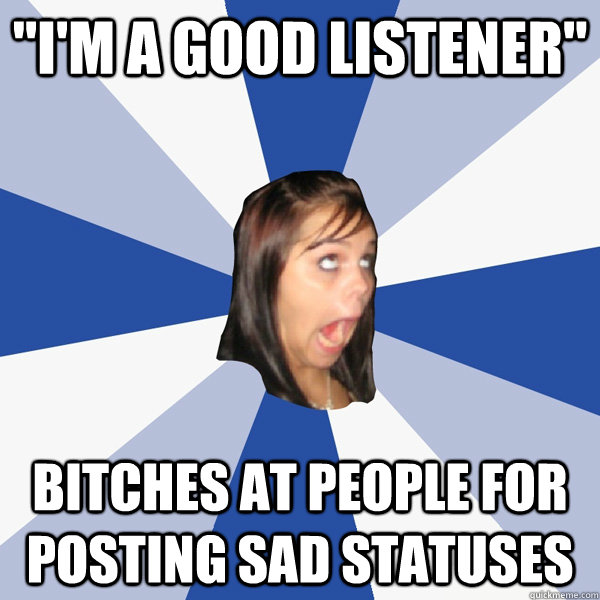 "i'm a good listener" bitches at people for posting sad statuses