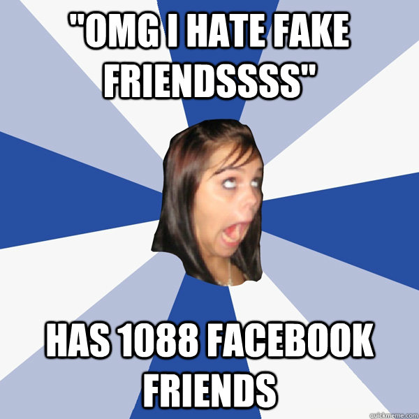 "OMG I HATE FAKE FRIENDSSSS" Has 1088 facebook friends Caption 3 goes here