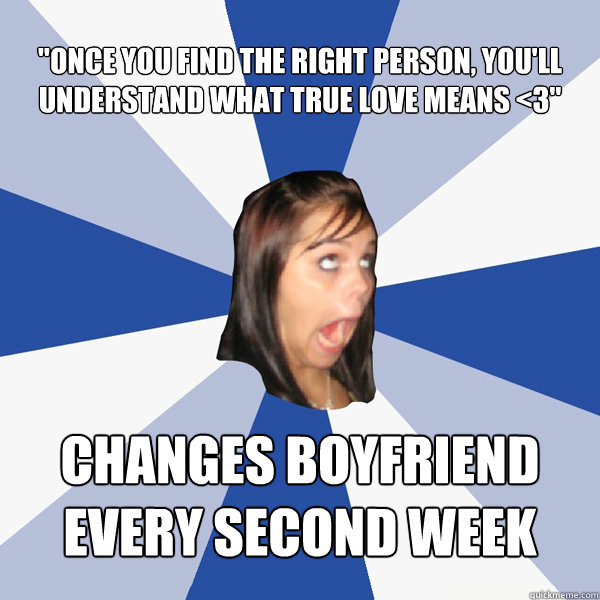 "once you find the right person, you'll understand what true love means <3" changes boyfriend every second week