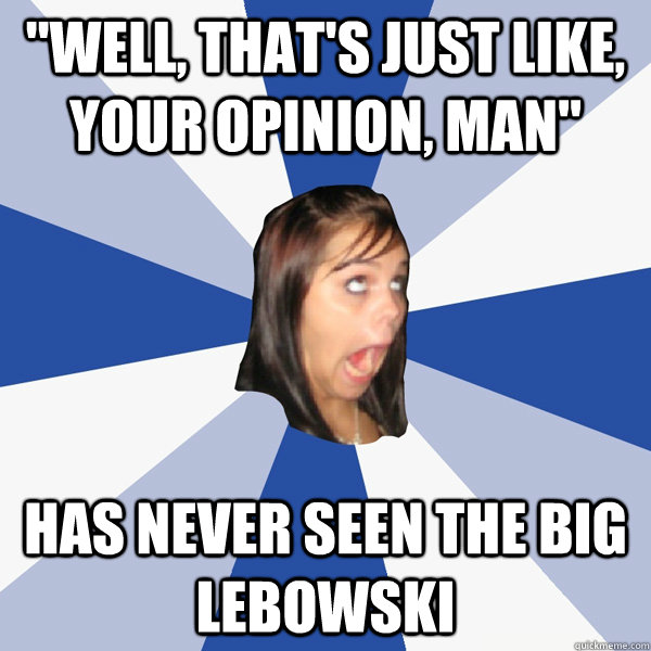 "Well, that's just like, your opinion, man" Has never seen the big lebowski