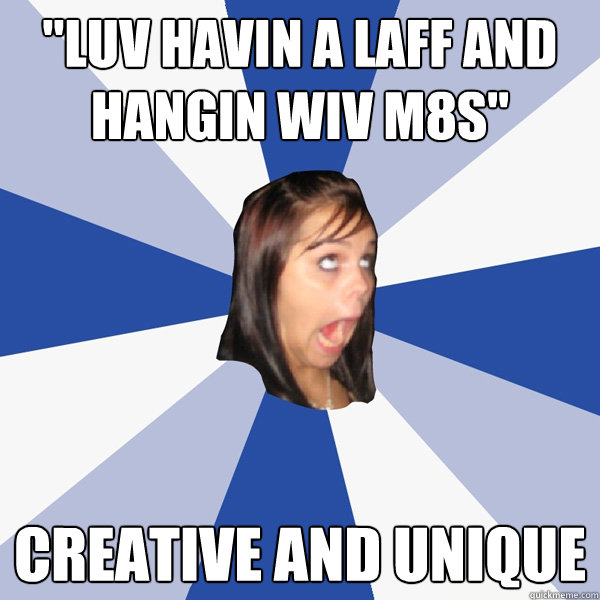 "Luv havin a laff and hangin wiv m8s" Creative and unique