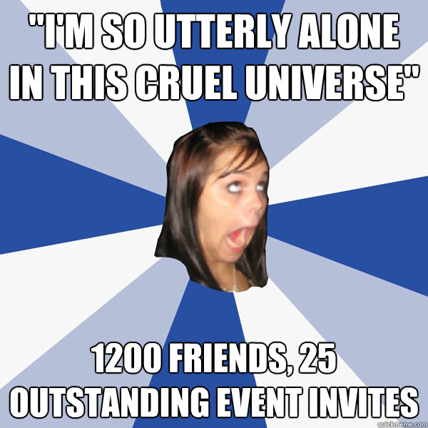 "i'm so utterly alone in this cruel universe" 1200 friends, 25 outstanding event invites