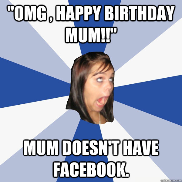 "omg , happy birthday mum!!" Mum doesn't have facebook.