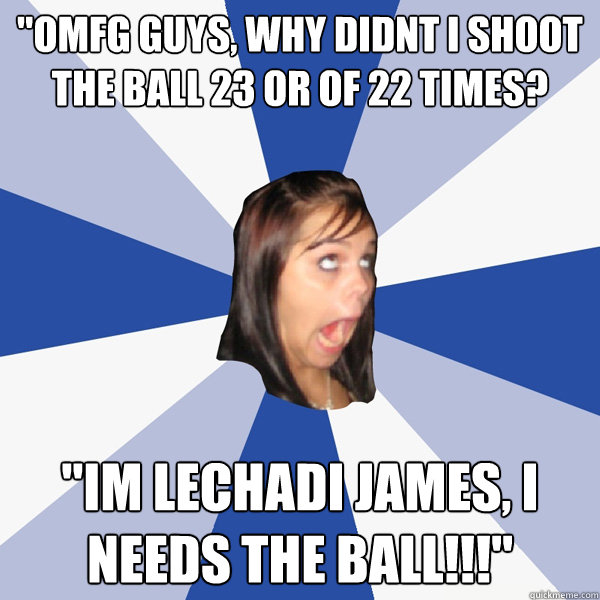 "omfg guys, why didnt i shoot the ball 23 or of 22 times? "im lechadi james, i needs the ball!!!"