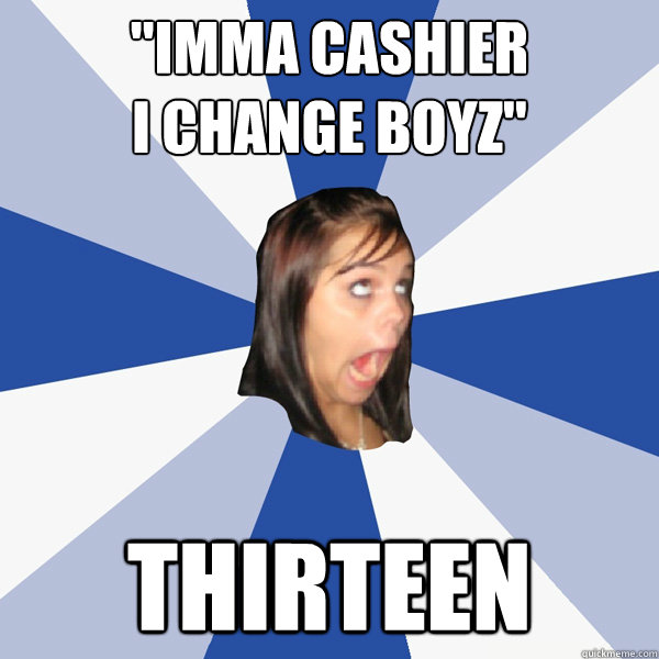 "Imma Cashier I change Boyz" thirteen