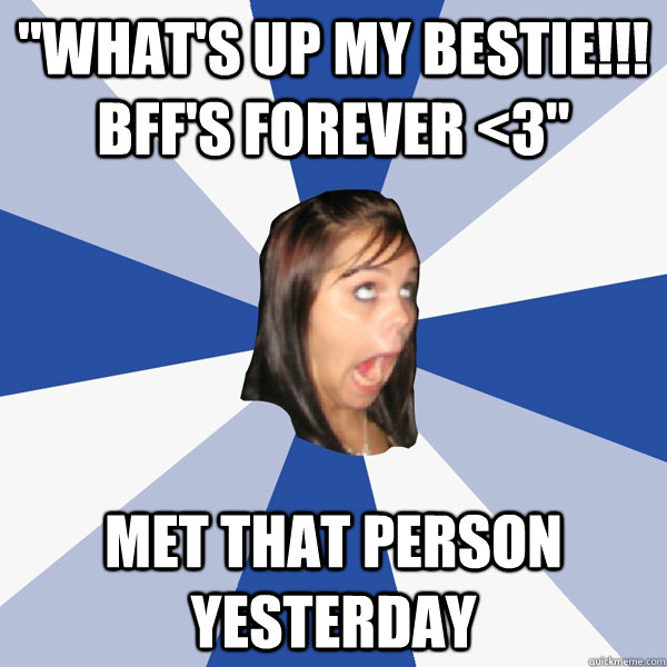 "What's up my bestie!!! BFF's forever <3" Met that person yesterday