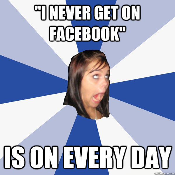 "I never get on facebook" is on every day