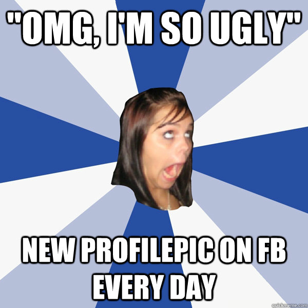 "OMG, I'M SO UGLY" new profilepic on fb every day