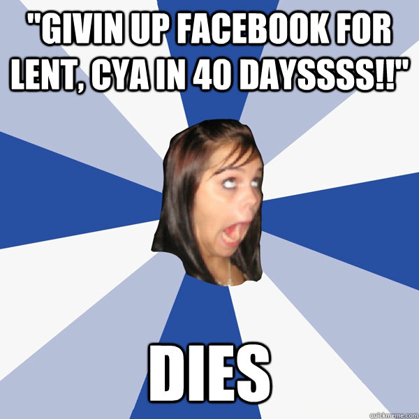 "givin up facebook for lent, cya in 40 dayssss!!" dies