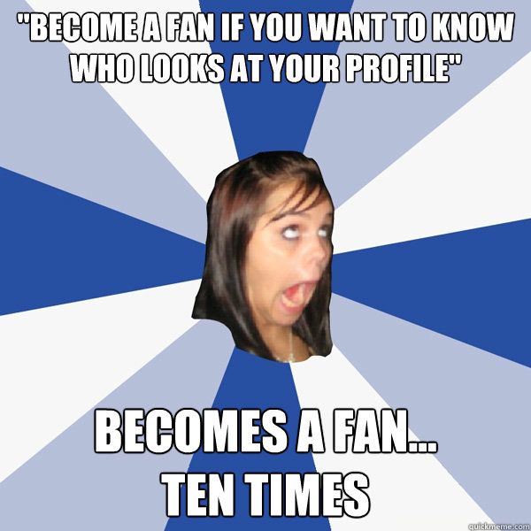"become a fan if you want to know who looks at your profile" becomes a fan... ten times