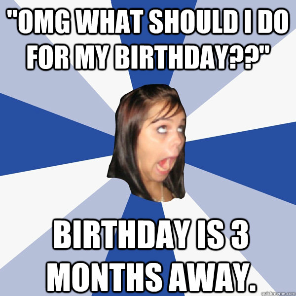 "omg what should I do for my birthday??" Birthday is 3 months away.