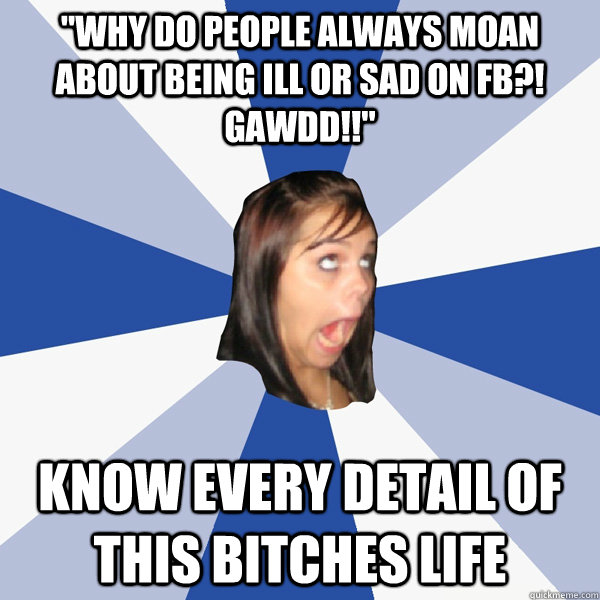 "Why do people always moan about being ill or sad on fb?! gawdd!!" Know every detail of this bitches life