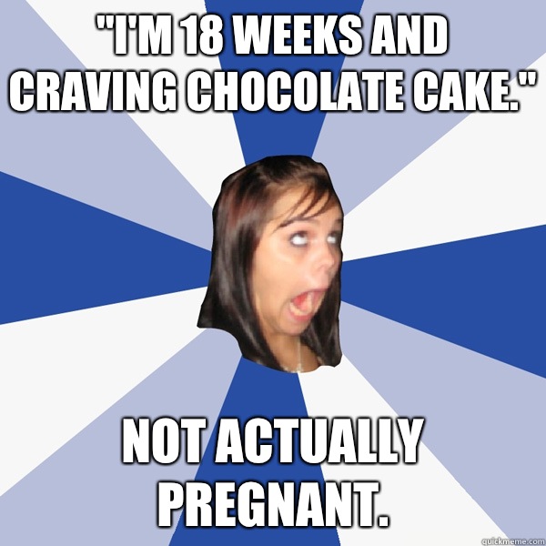 "I'm 18 weeks and craving chocolate cake." Not actually pregnant.