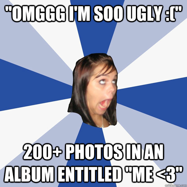 "omggg i'm soo ugly :(" 200+ photos in an album entitled "me <3"