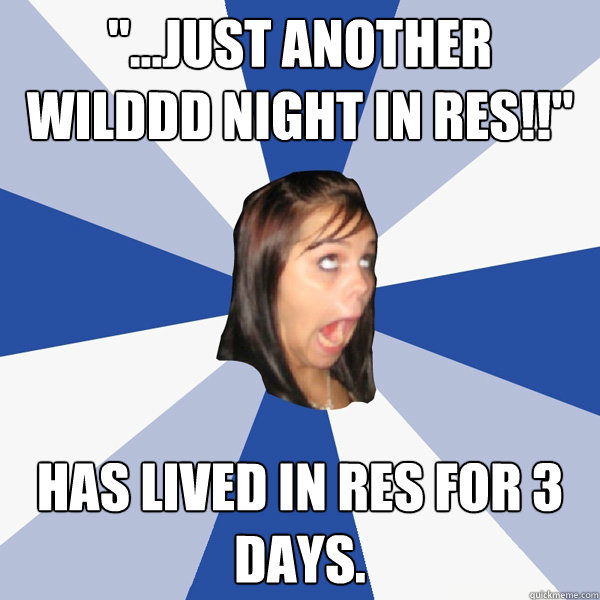 "...Just another wilddd night in res!!" Has lived in res for 3 days.