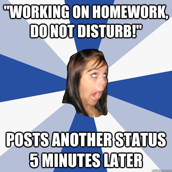 "Working on homework, do not disturb!" posts another status 5 minutes later