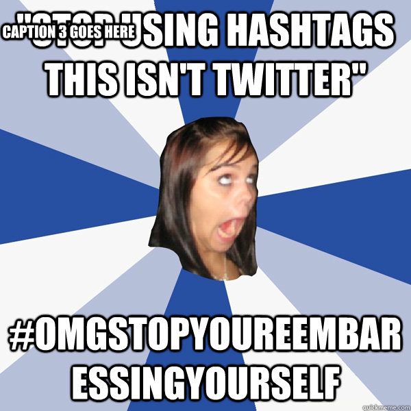 "stop using hashtags this isn't twitter" #OmgStopYoureEmbaressingYourself Caption 3 goes here