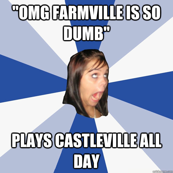 "Omg farmville is so dumb" plays castleville all day